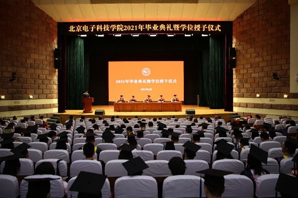 6月21日,北京電子科技學院2021屆學生畢業典禮暨學位授予儀式在校文化藝術中心隆重舉行,院領導鮑遂獻、毛明、封化民、徐濤、喬曉麗出席,有關部門負責同志、教師代表、全體本科畢業生和研究生畢業生500余人參加。典禮由副院長封化民主持。