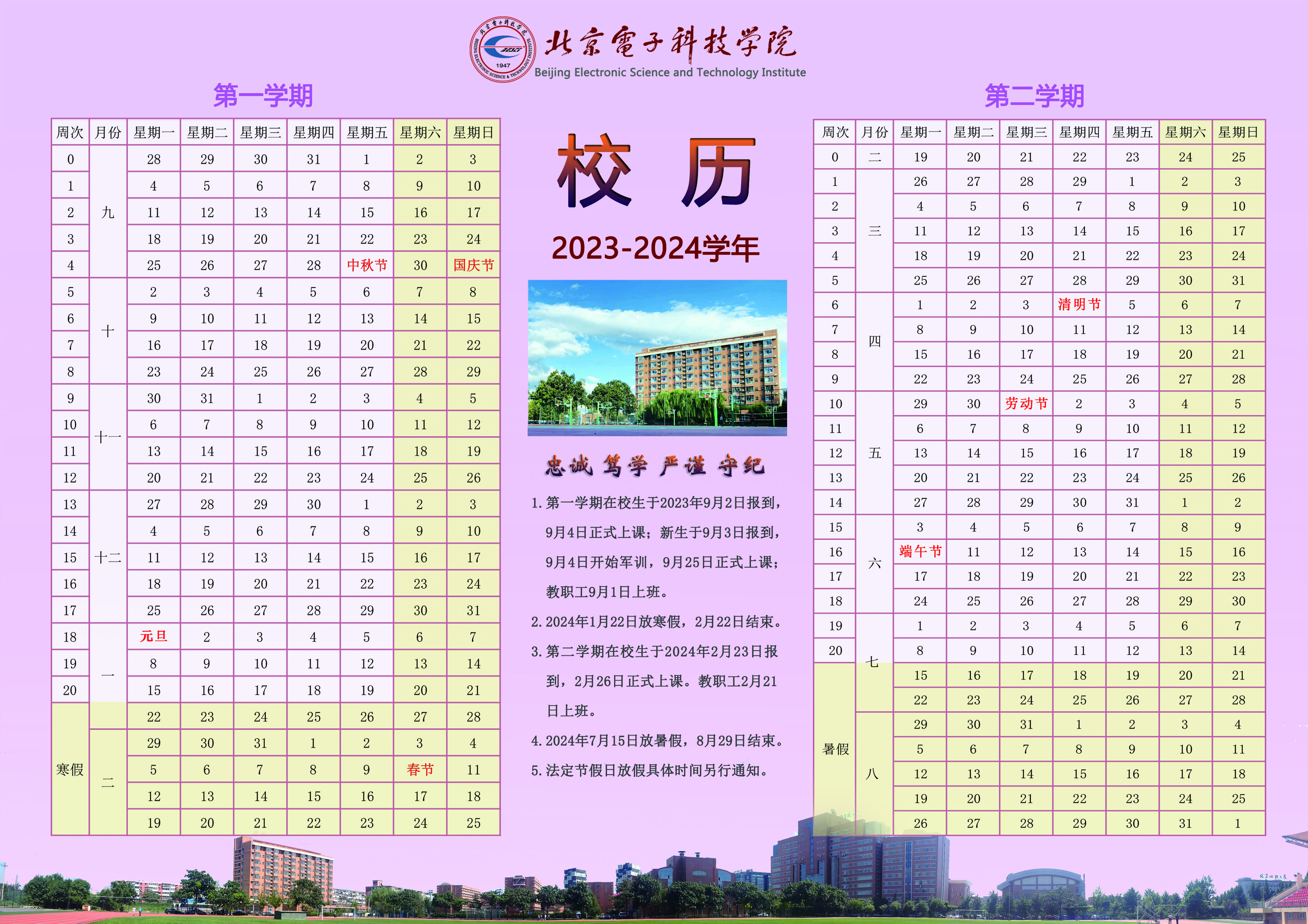 2023-2024學(xué)年度校歷